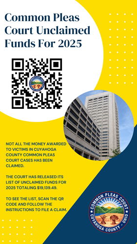If you believe you are owed unclaimed funds from a Cuyahoga County Common Pleas Court case, there is a form below that you can download and fill out for review.